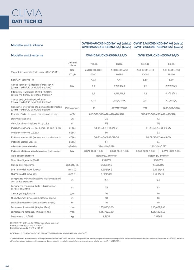 *Dati dichiarati in conformità ai Regolamenti UE n.206/2012, relativo alle specifiche per la progettazione ecocompatibile dei condizionatori d’aria e dei ventilatori e n. 626/2011, relativo
