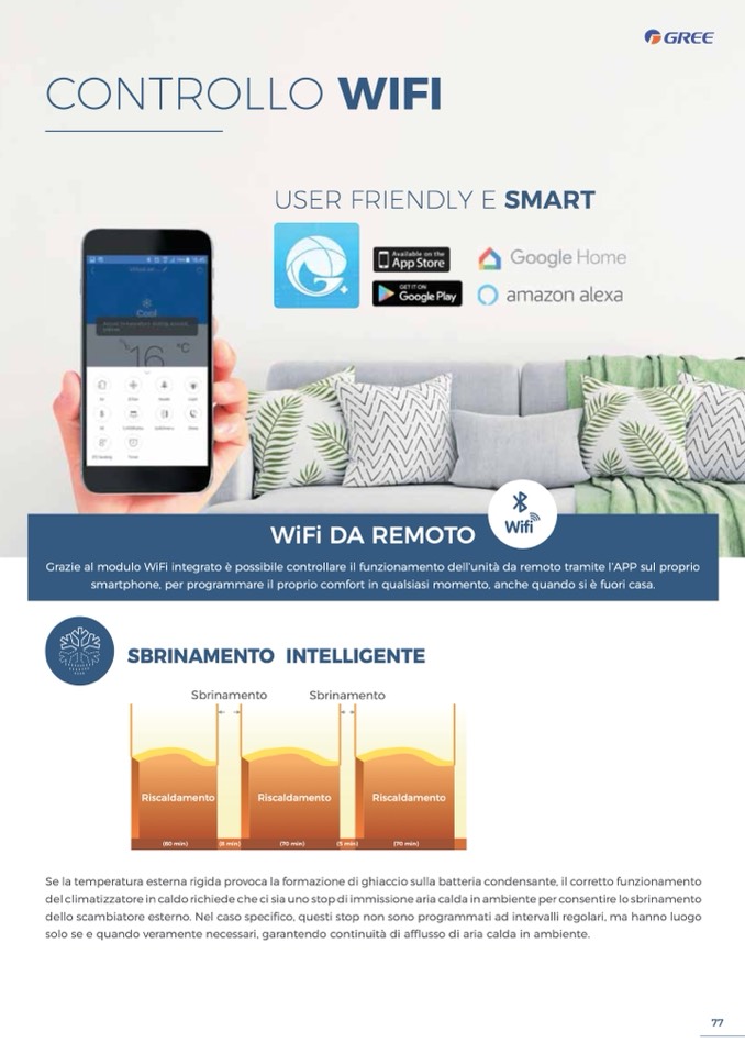 Grazie al modulo WiFi integrato è possibile controllare il funzionamento dell’unità da remoto tramite l’APP sul proprio