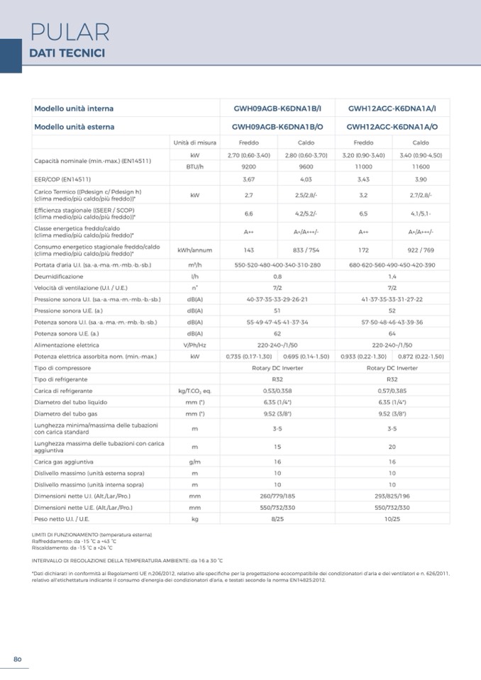 *Dati dichiarati in conformità ai Regolamenti UE n.206/2012, relativo alle specifiche per la progettazione ecocompatibile dei condizionatori d’aria e dei ventilatori e n. 626/2011,