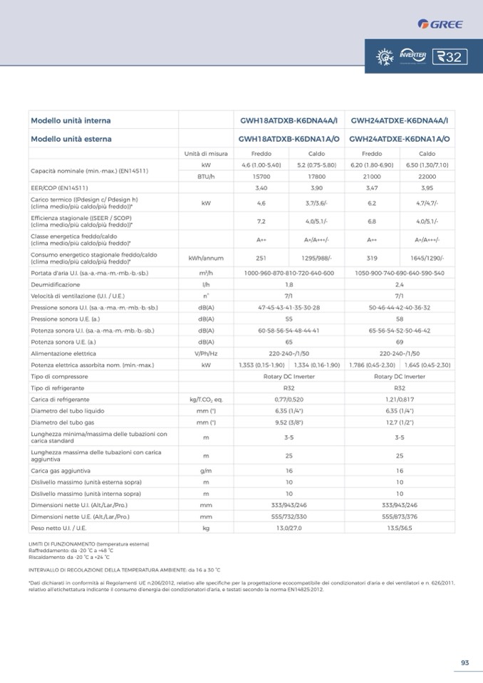 *Dati dichiarati in conformità ai Regolamenti UE n.206/2012, relativo alle specifiche per la progettazione ecocompatibile dei condizionatori d’aria e dei ventilatori e n. 626/2011,