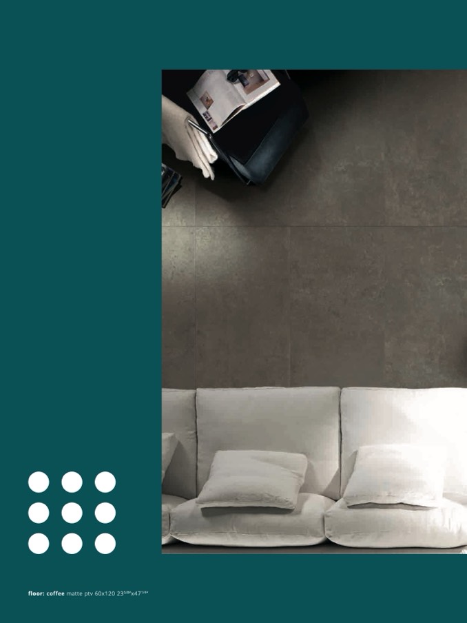 floor: coffee matte ptv 60x120 235/8”x471/4”