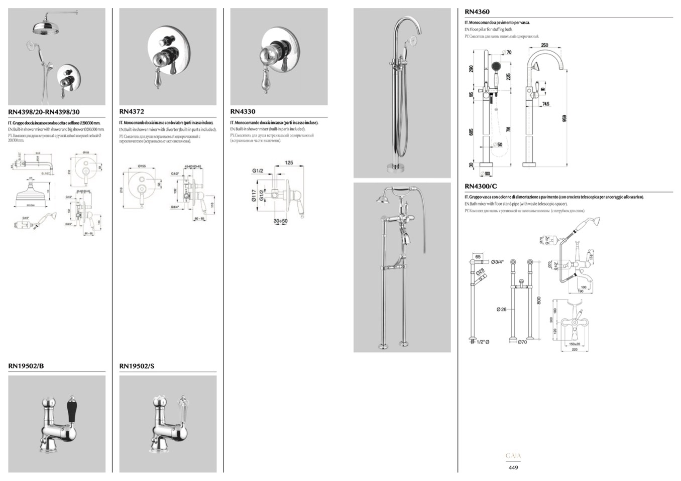 IT. Gruppo vasca con colonne di alimentazione a pavimento (con crociera telescopica per ancoraggio allo scarico).