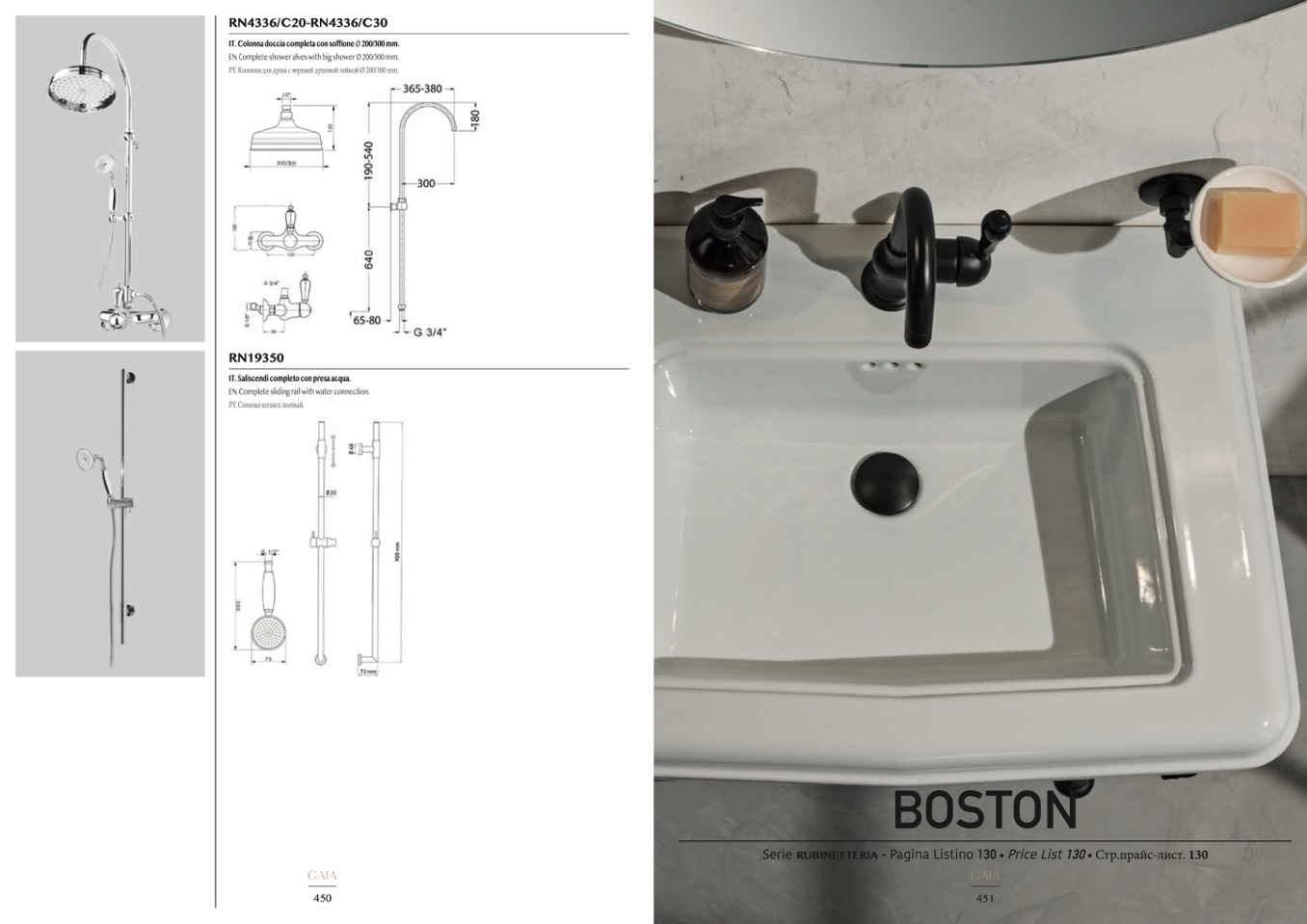 EN. Complete shower alves with big shower Ø 200/300 mm.
