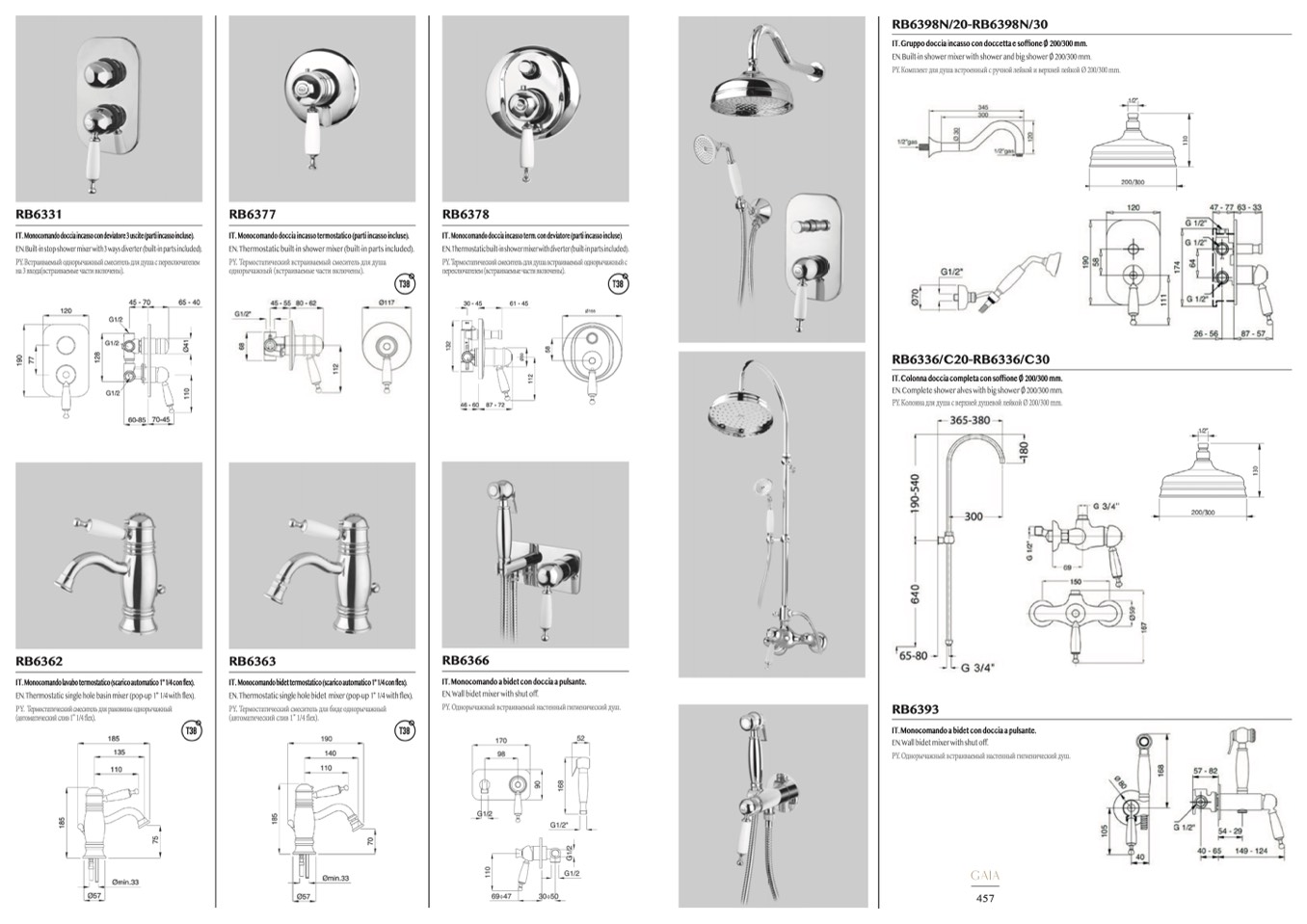IT. Gruppo doccia incasso con doccetta e soffione Ø 200/300 mm.