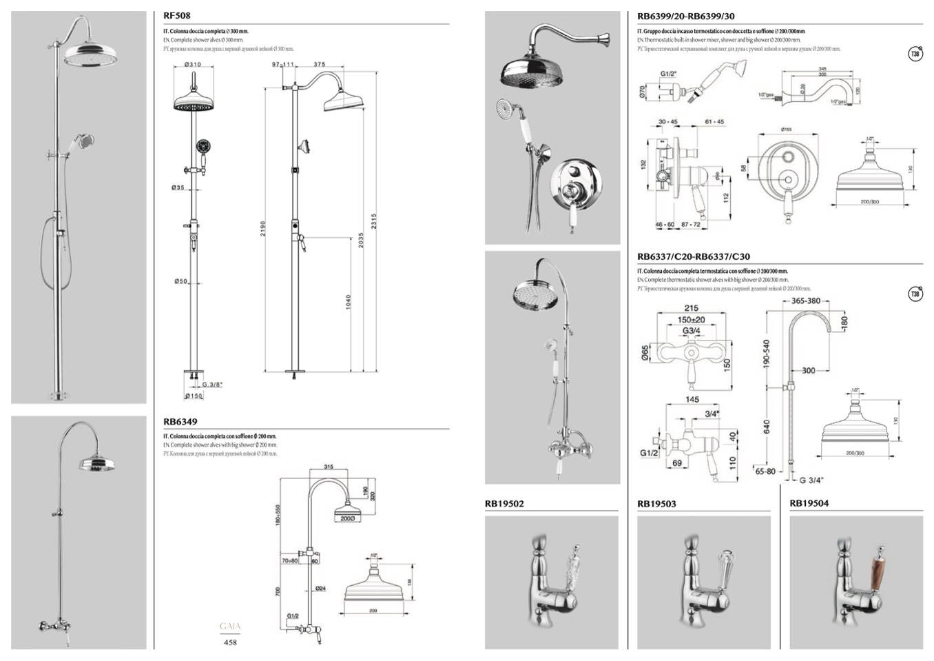 EN. Complete thermostatic shower alves with big shower Ø 200/300 mm.