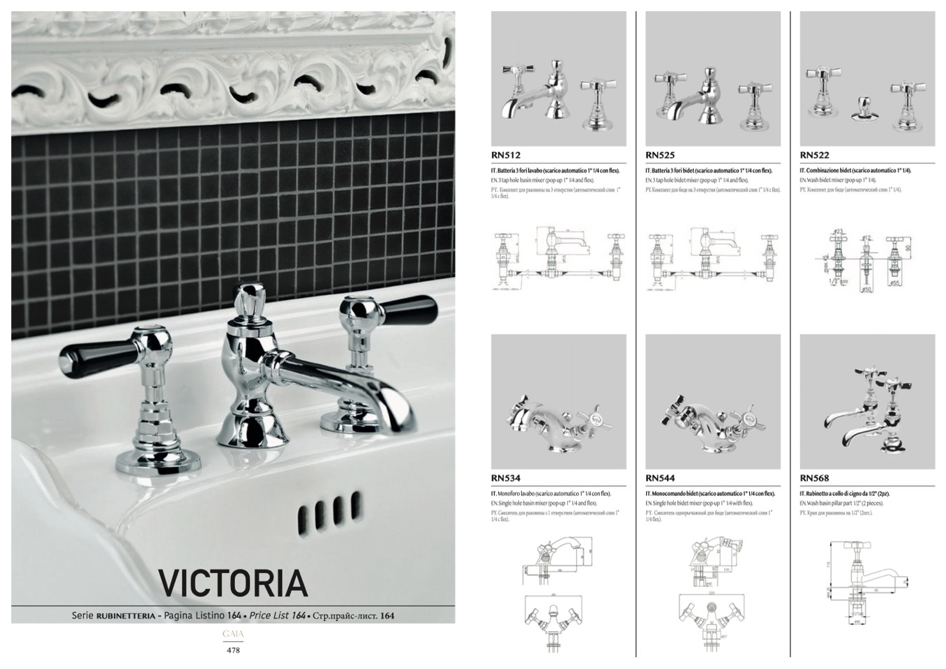 IT. Batteria 3 fori lavabo (scarico automatico 1” 1/4 con flex).