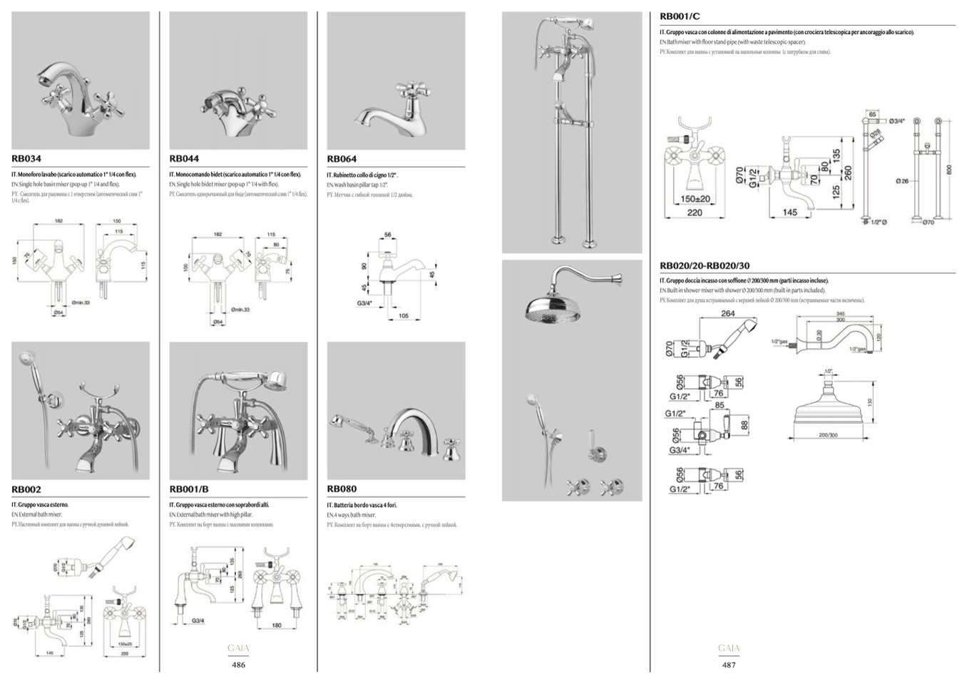 IT. Gruppo vasca con colonne di alimentazione a pavimento (con crociera telescopica per ancoraggio allo scarico).