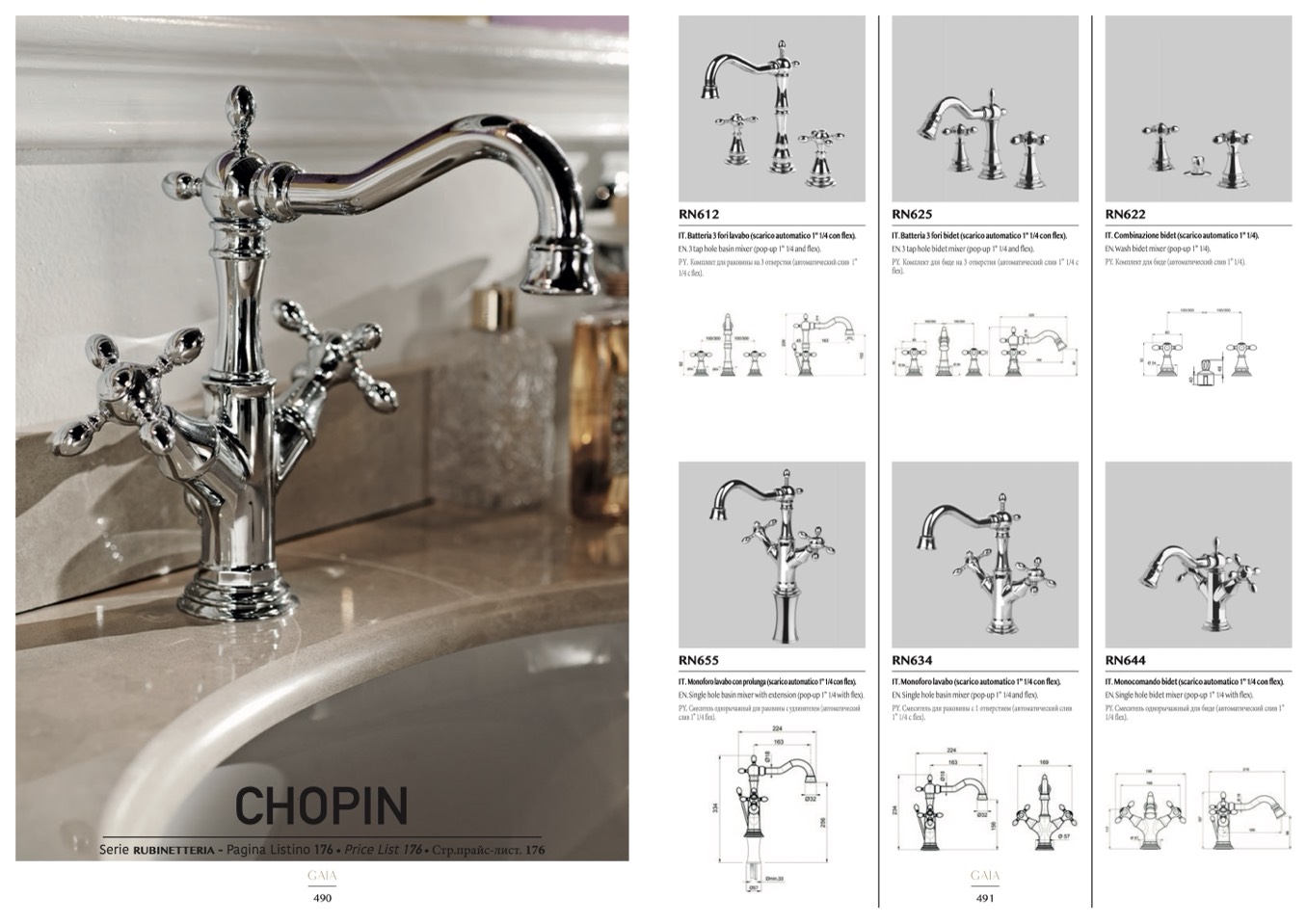 IT. Batteria 3 fori lavabo (scarico automatico 1” 1/4 con flex).