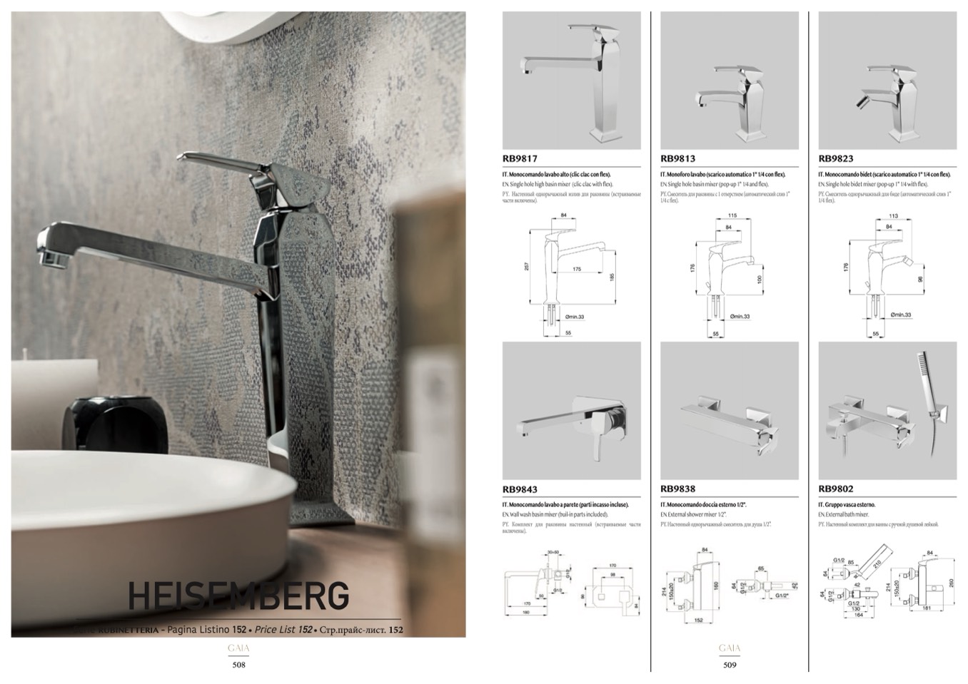 IT. Monocomando lavabo a parete (parti incasso incluse).