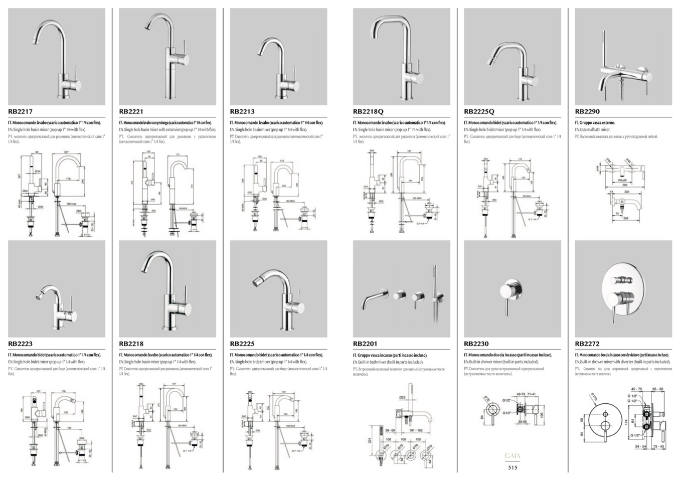 IT. Monocomando lavabo (scarico automatico 1” 1/4 con flex).