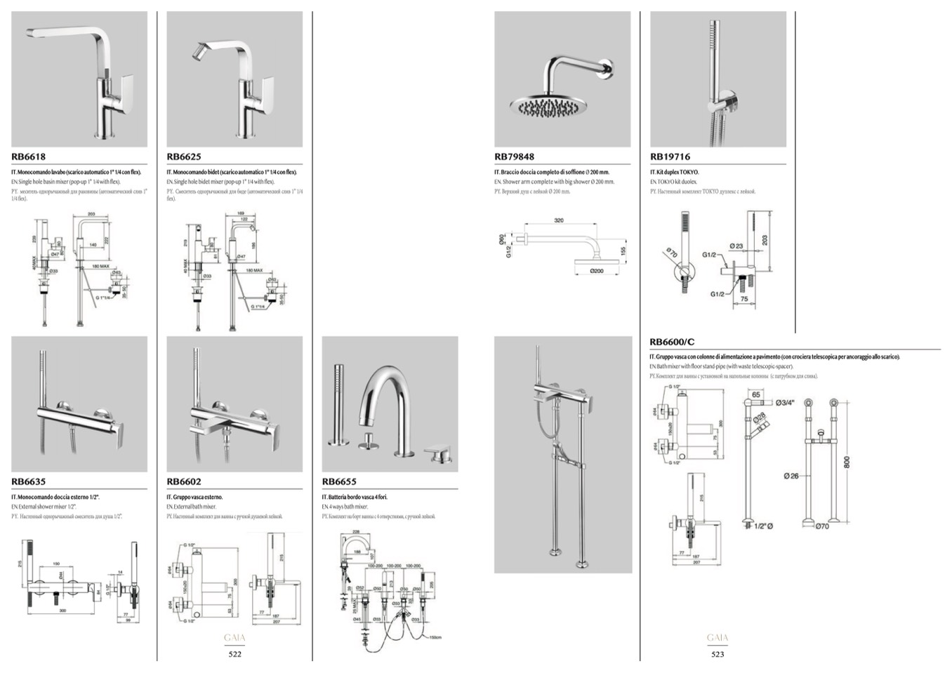 IT. Monocomando lavabo (scarico automatico 1” 1/4 con flex).