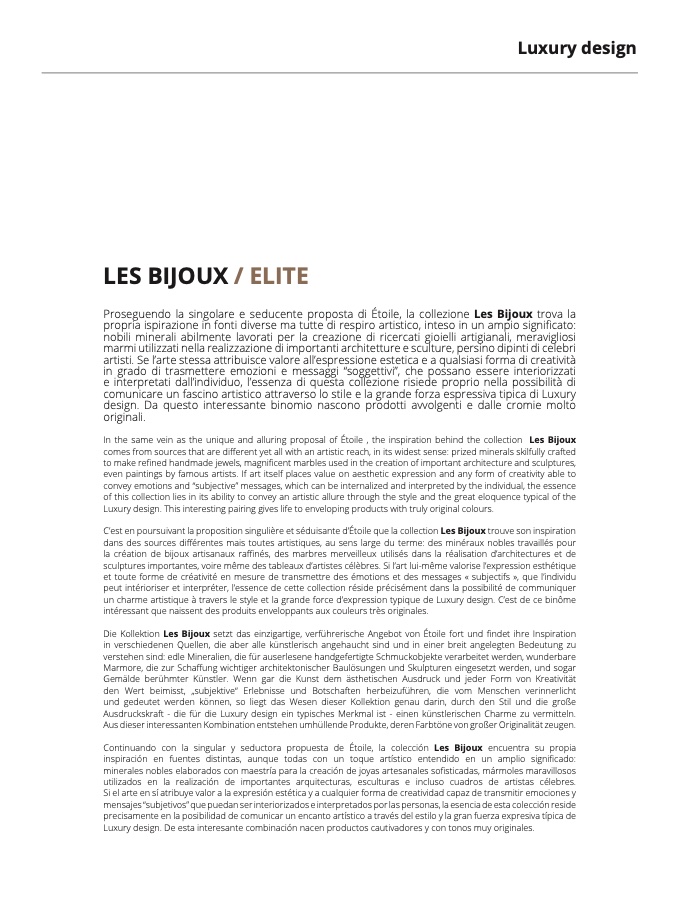 un charme artistique à travers le style et la grande force d’expression typique de Luxury design. C’est de ce binôme