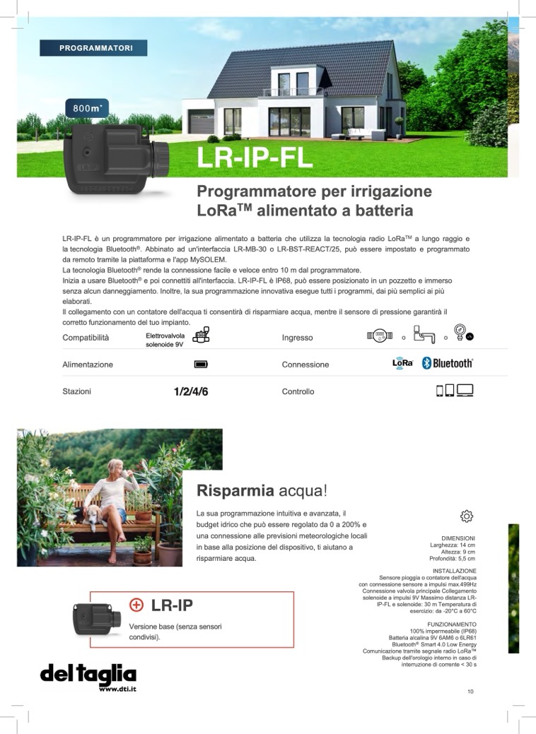LR-IP-FL è un programmatore per irrigazione alimentato a batteria che utilizza la tecnologia radio LoRa