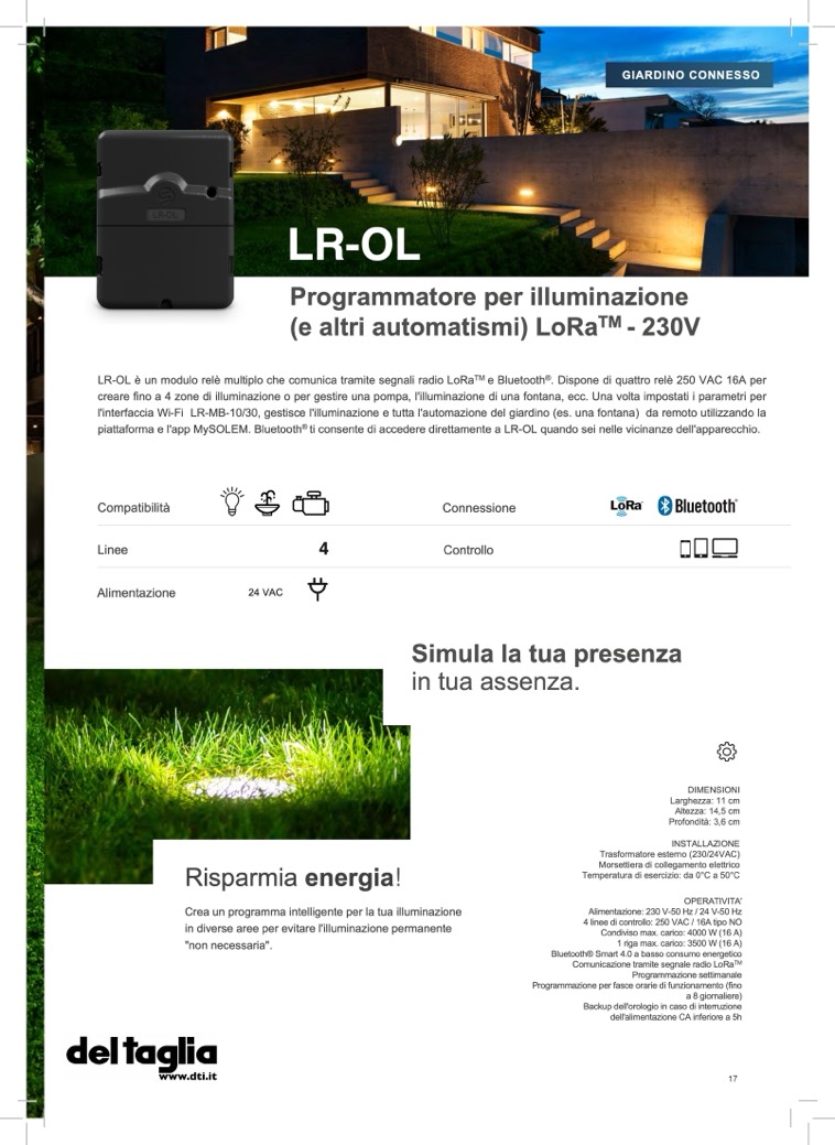 l'interfaccia Wi-Fi LR-MB-10/30, gestisce l'illuminazione e tutta l'automazione del giardino (es. una fontana) da remoto utilizzando la