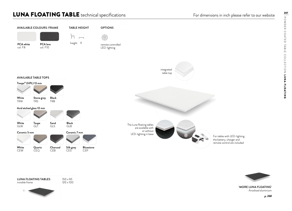 For tables with LED-lighting