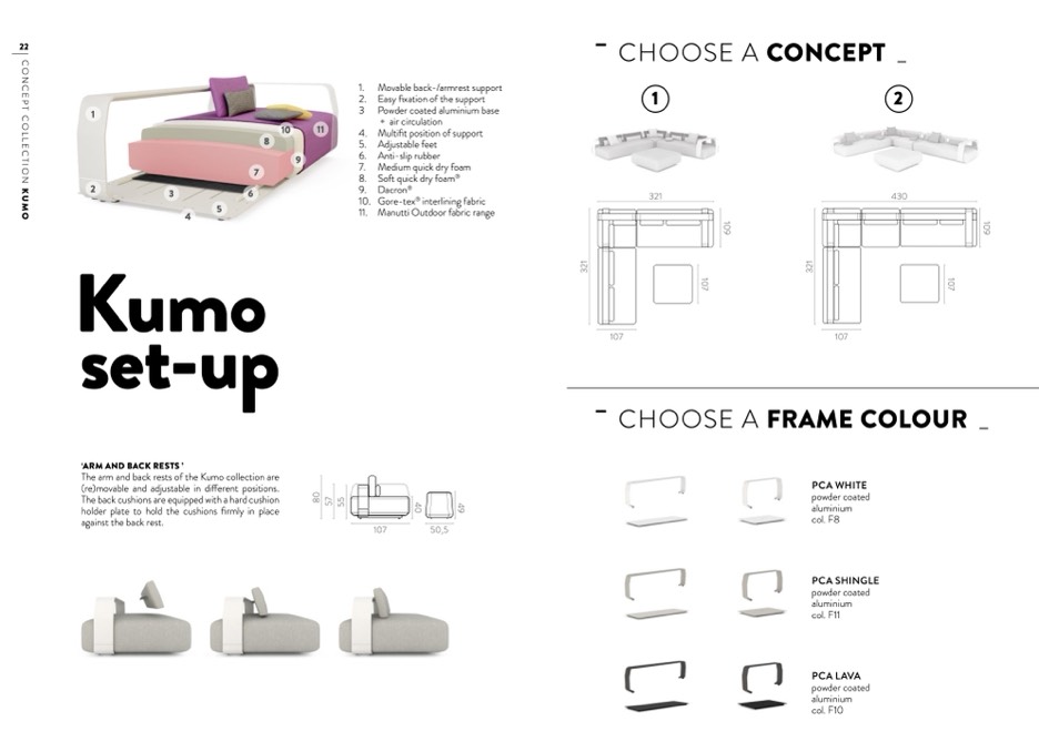 The arm and back rests of the Kumo collection are
