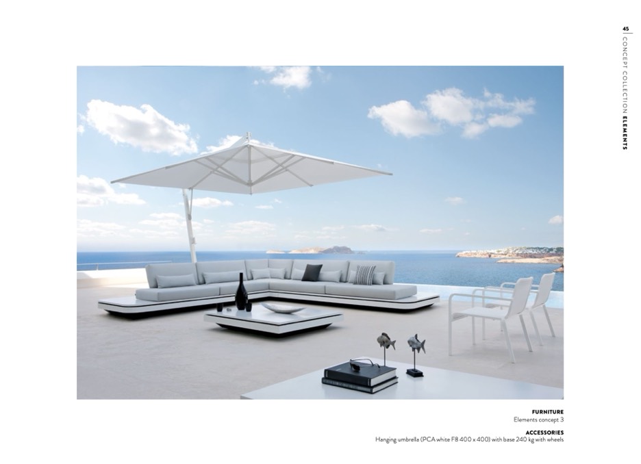 Hanging umbrella (PCA white F8 400 x 400) with base 240 kg with wheels