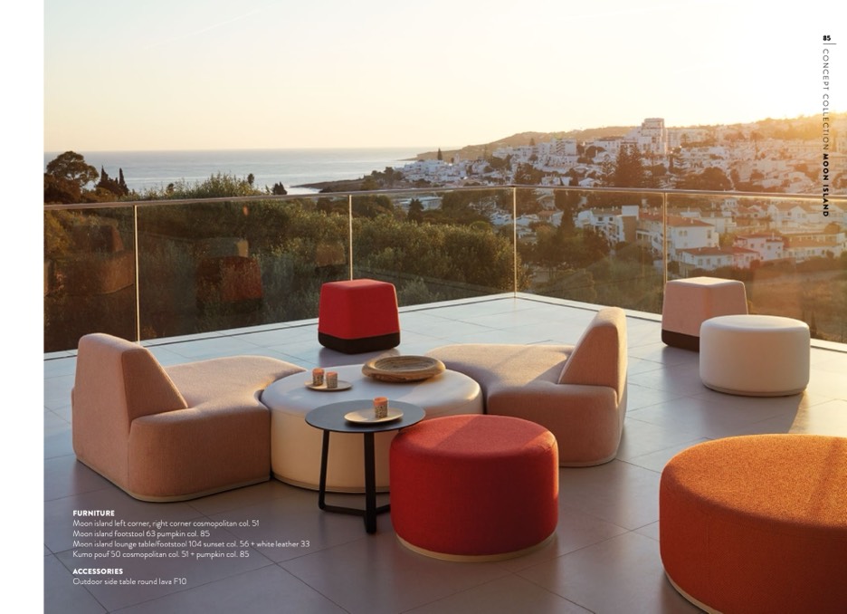 Moon island lounge table/footstool 104 sunset col. 56 + white leather 33