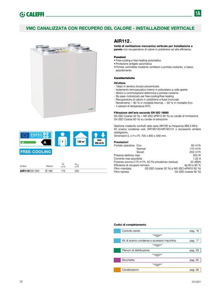 Unità di ventilazione meccanica verticale per installazione a