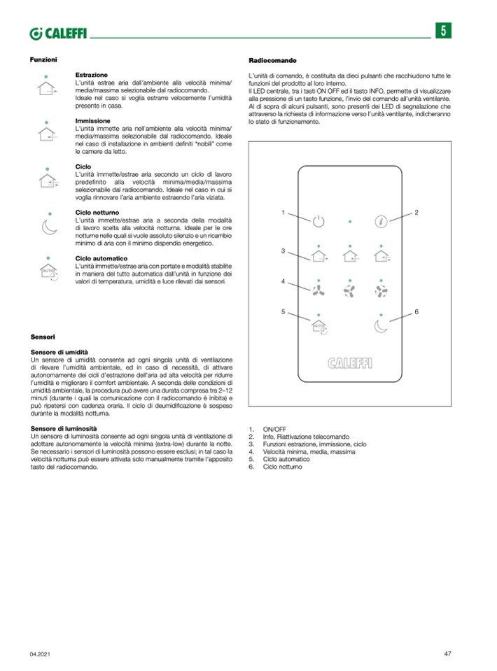 alla pressione di un tasto funzione, l’invio del comando all’unità ventilante.