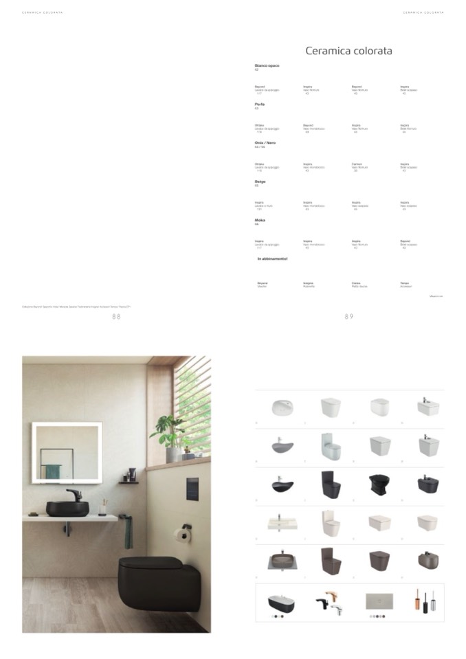 Collezione Beyond/ Specchio Iridia/ Mensola Savana/ Rubinetteria Insigna/ Accessori Tempo/ Placca EP1