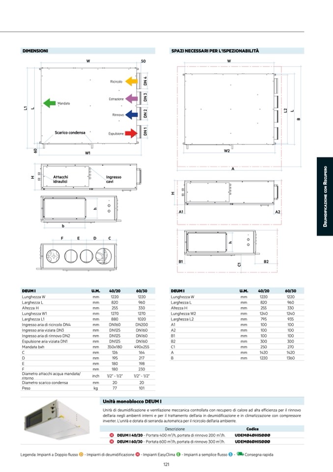 Unità di deumidificazione e ventilazione meccanica controllata con recupero di calore ad alta efficienza per il rinnovo