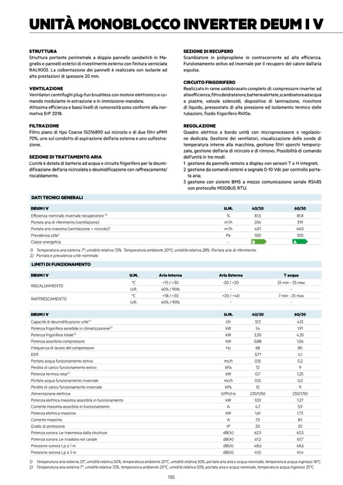 L'unità è dotata di batteria ad acqua e circuito frigorifero per la deumi-