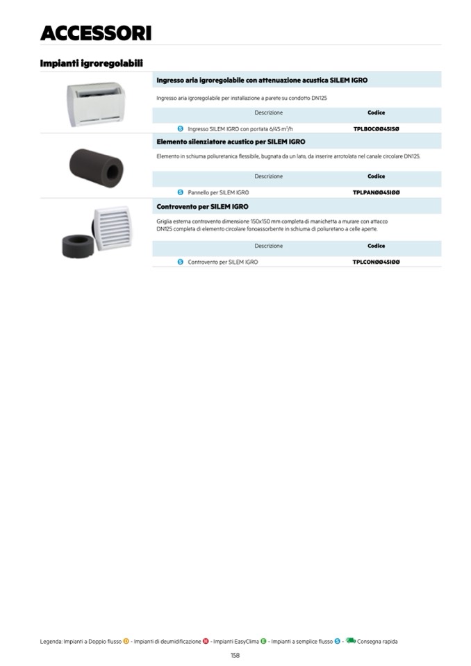 Legenda: Impianti a Doppio flusso D - Impianti di deumidificazione H - Impianti EasyClima E - Impianti a semplice flusso S -