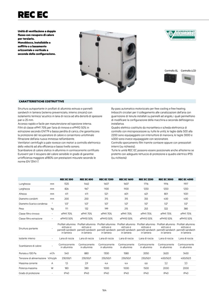 Eurovent per il recupero del calore sensibile in grado di garantire