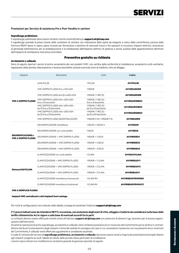 Il sopralluogo preliminare deve essere richiesto tramite email all'indirizzo: support.air@irsap.com