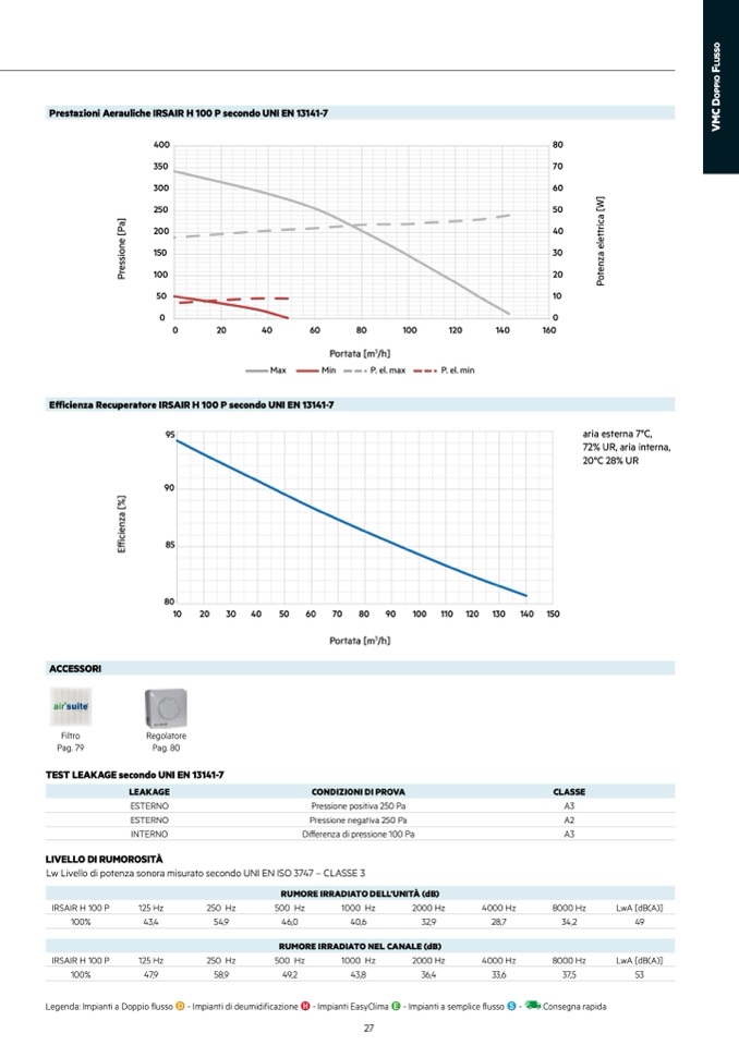 Prestazioni Aerauliche IRSAIR H 100 P secondo UNI EN 13141-7