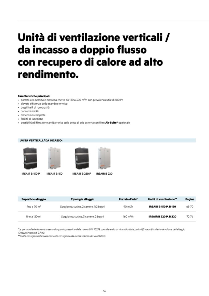 *La portata d'aria è calcolata secondo quanto prescritto dalla norma UNI 10339, considerando un ricambio d'aria pari a 0,5 volumi/h riferito al volume dell'alloggio