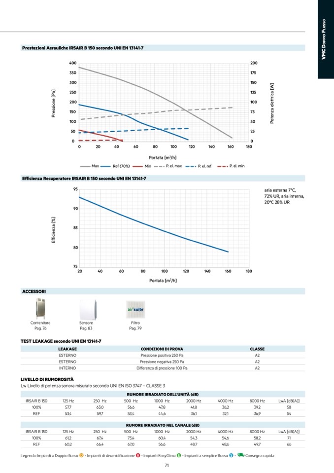 Prestazioni Aerauliche IRSAIR B 150 secondo UNI EN 13141-7