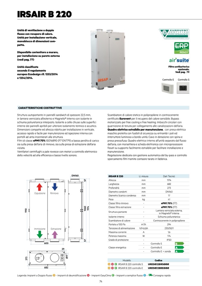 Legenda: Impianti a Doppio flusso D - Impianti di deumidificazione H - Impianti EasyClima E - Impianti a semplice flusso S -