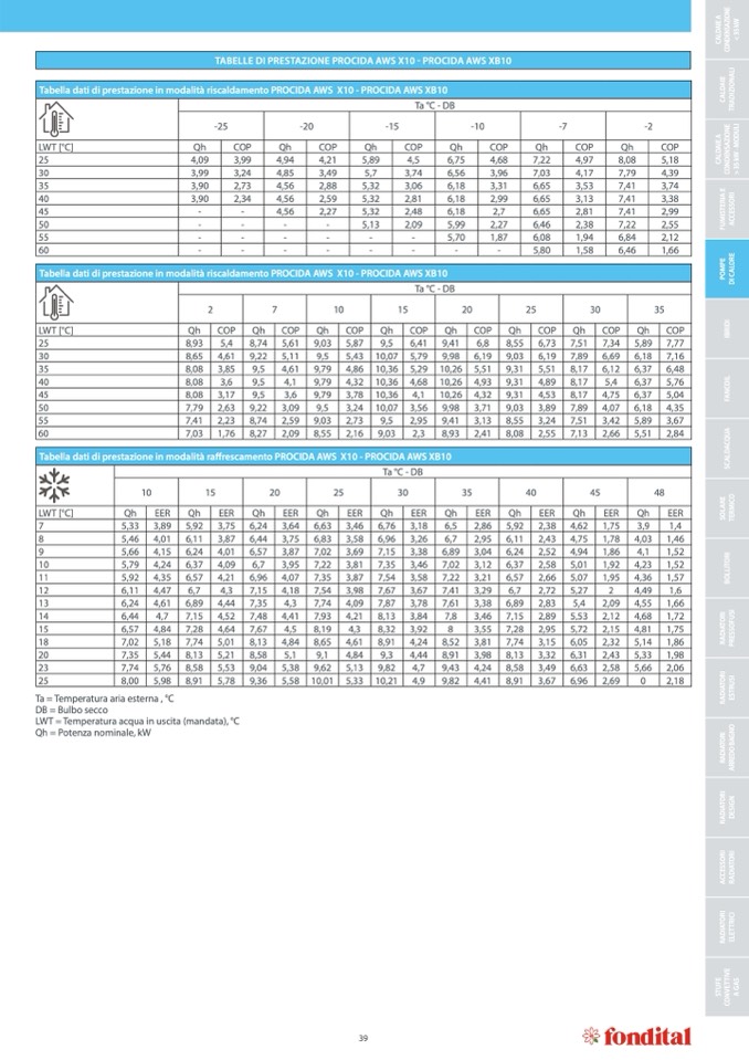 TABELLE DI PRESTAZIONE PROCIDA AWS X10 - PROCIDA AWS XB10
