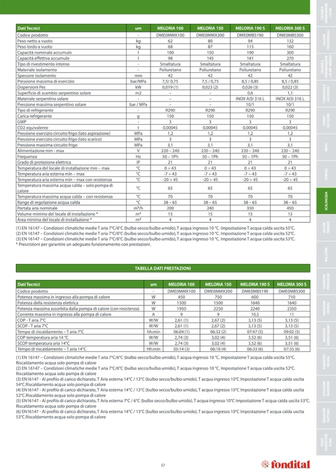 (1) EN 16147 – Condizioni climatiche medie T aria 7°C/6°C (bulbo secco/bulbo umido), T acqua ingresso 10 °C. Impostazione T acqua calda uscita 55°C.