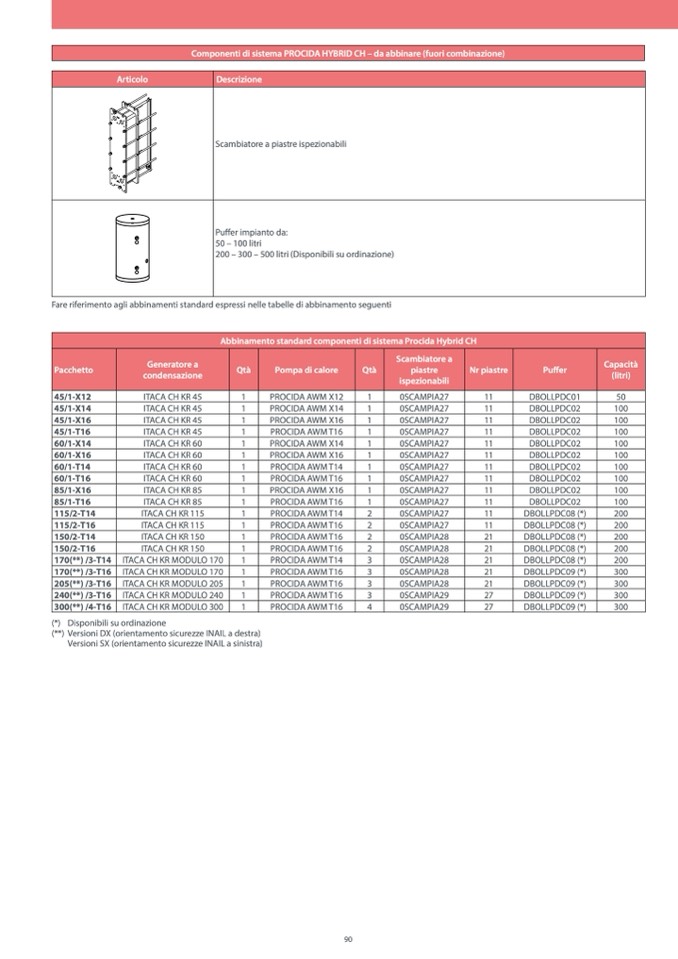 Abbinamento standard componenti di sistema Procida Hybrid CH