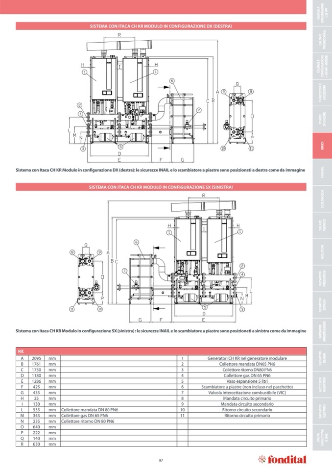 Sistema con Itaca CH KR Modulo in configurazione DX (destra): le sicurezze INAIL e lo scambiatore a piastre sono posizionati a destra come da immagine