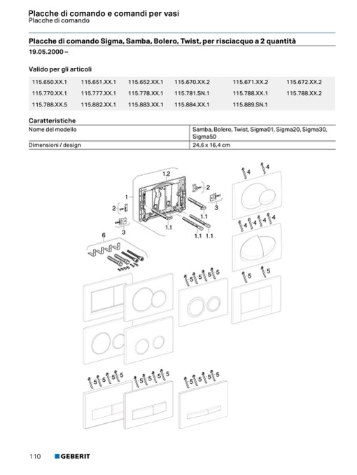 Placche di comando Sigma, Samba, Bolero, Twist, per risciacquo a 2 quantit