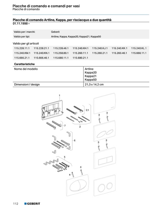 Panoramica placche di comando e placche di copertura per cassette di risciacquo da