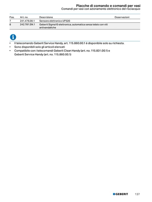 Il telecomando Geberit Service Handy, art. 115.860.00.1 è disponibile solo su richiesta.