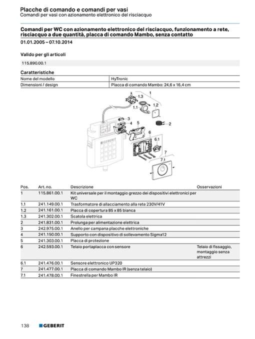 Comandi per WC con azionamento elettronico del risciacquo, funzionamento a rete,