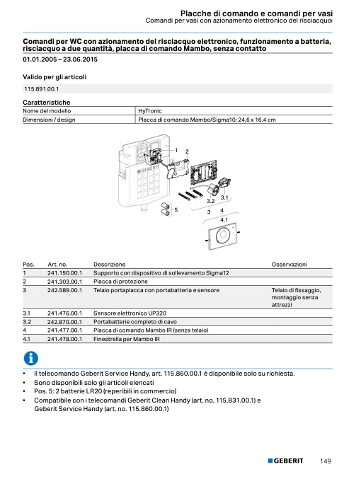 Il telecomando Geberit Service Handy, art. 115.860.00.1 è disponibile solo su richiesta.