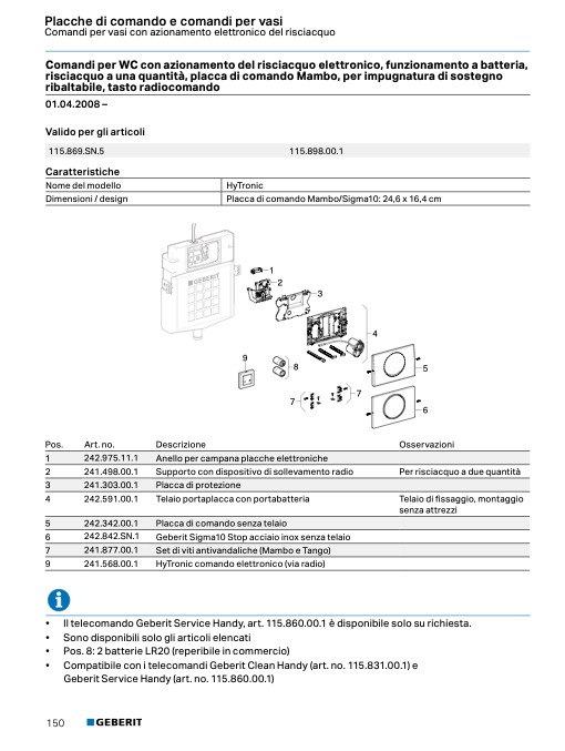 Il telecomando Geberit Service Handy, art. 115.860.00.1 è disponibile solo su richiesta.
