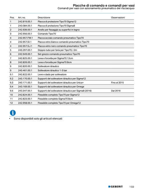 • Comandi WC HyTouch, manuali / pneumatici, risciacquo ad una quantità → pag. 155