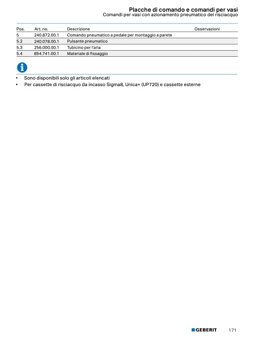 • Per cassette di risciacquo da incasso Sigma8, Unica+ (UP720) e cassette esterne