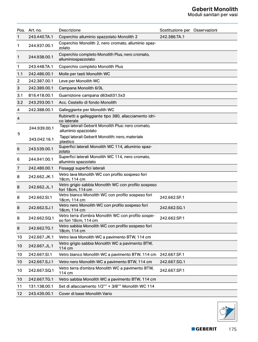 1.1 242.486.00.1 Molle per tasti Monolith WC