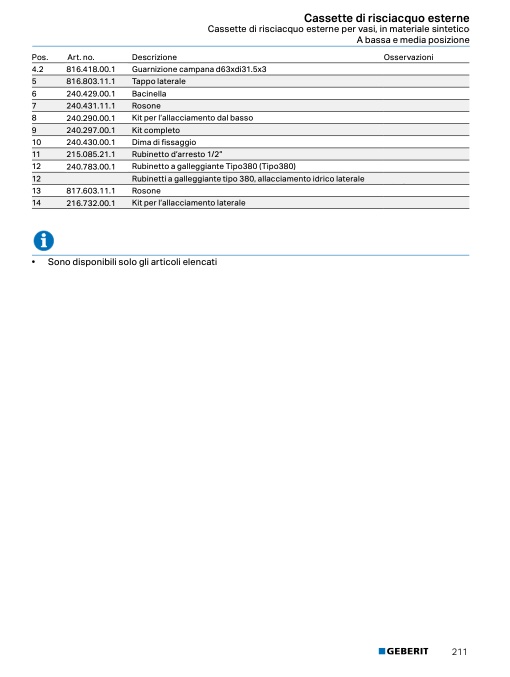 • Comandi WC HyTouch, manuali / pneumatici, risciacquo ad una quantità → pag. 155