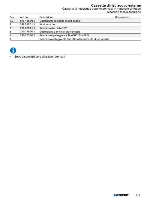 • Comandi WC HyTouch, manuali / pneumatici, risciacquo ad una quantità → pag. 155