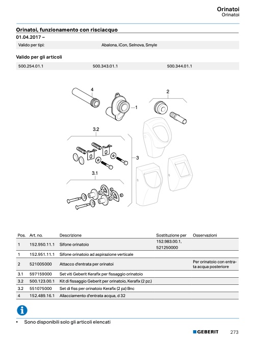 Cannotto d’allacciamento per orinatoi Geberit Preda